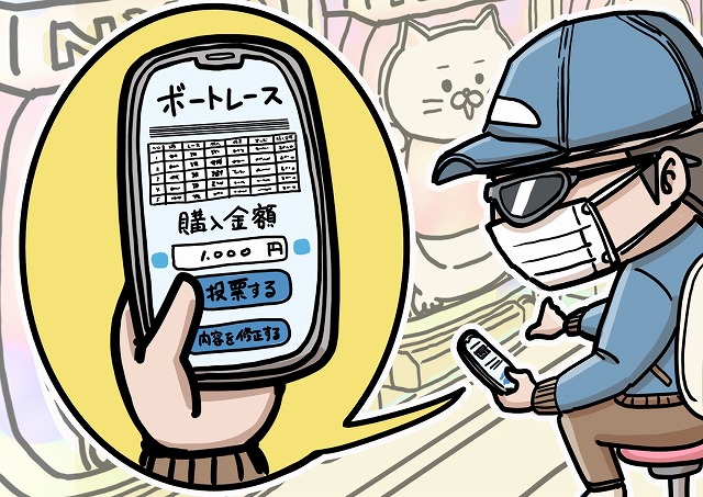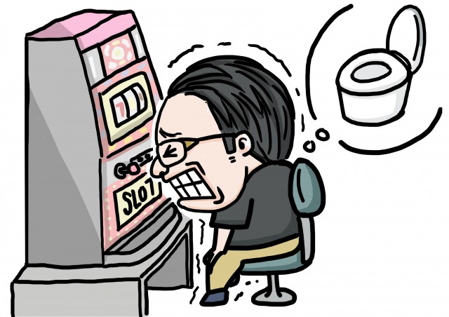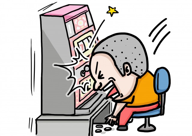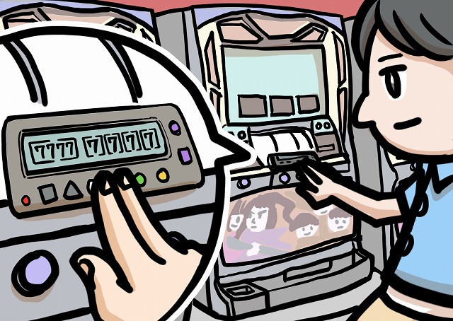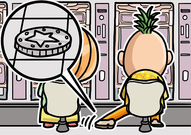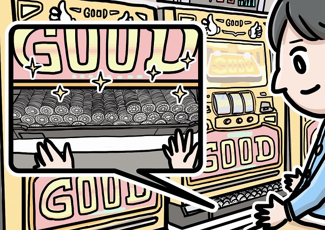 余ったメダルを隣の人の下皿に投げて帰る人のイラストです