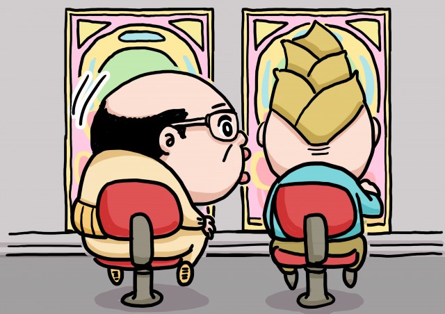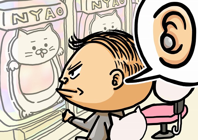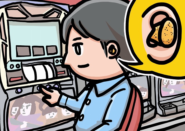 パチンコ玉を耳栓代わりに使う人のイラストです