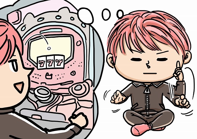 カレンダーを見ながらパチスロのことを考える人のイラストです