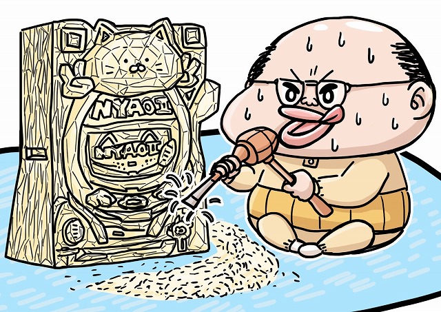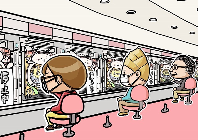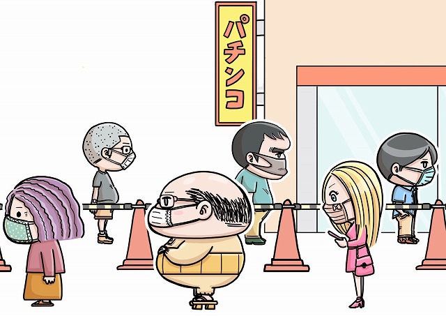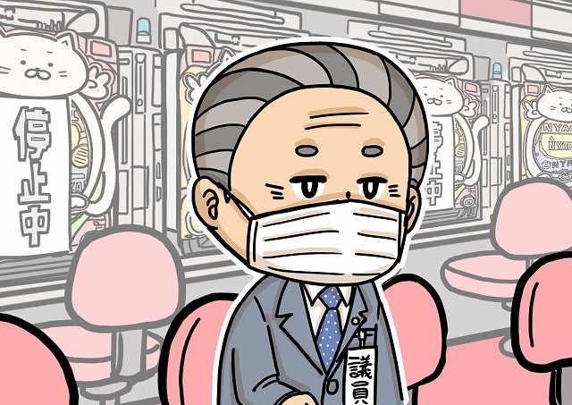 自粛期間中にパチンコ屋を訪れる議員のイラストです