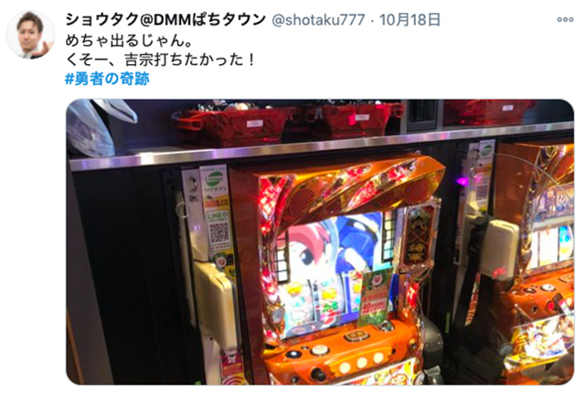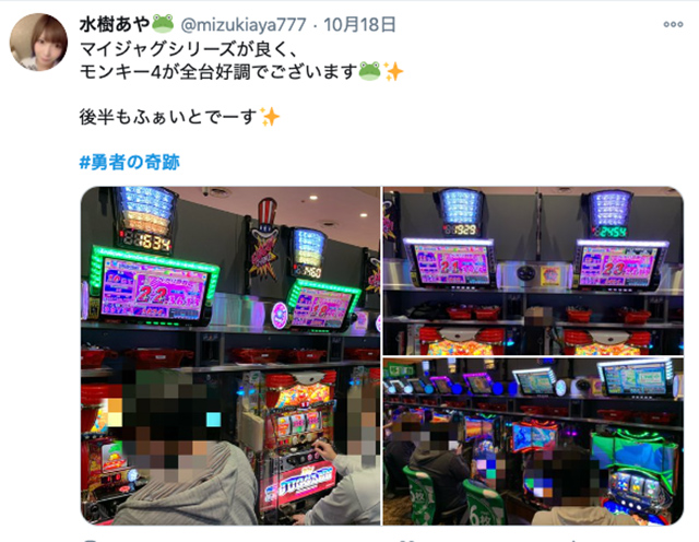 さらにギブアップ大西は『マイジャグラーⅣ』にて、なんとぶどうが1/5を切るという奇跡の挙動に!?(ギャグの可能性あり)これもすぐさまTwitterでプレイヤーに共有。