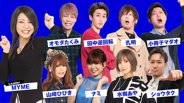 団長のMYME、水樹あや、ナミ、田中逆回転、孔明、ショウタク、ギブアップ大西(小冊子マダオ)に加えて、西日本から副団長の果生梨も参戦。