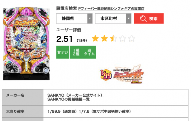 『シンフォギア』の大当り確率の「電サポ中図柄揃い確率」というのが、1種2種混合機の時短中大当り確率です。