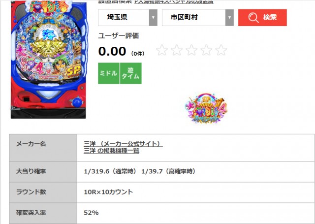上の写真はDMMぱちタウンの機種情報ページです。大当り確率の項目の(高確率時)という箇所が、確変状態の大当り確率です。