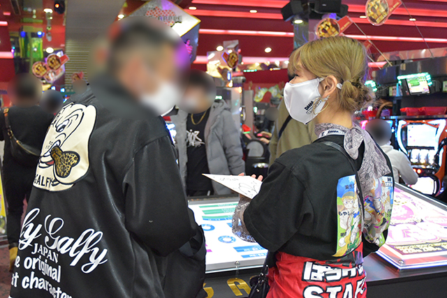 前半組を加えた現在は、総勢5名で役割を分担できるスペシャルタイム。前半組は後半組にはもちろん、続々と訪れる新しいユーザーにも朝からの店内状況や現在の狙い目台の予想など、多くの有益な情報を共有しているようだった。