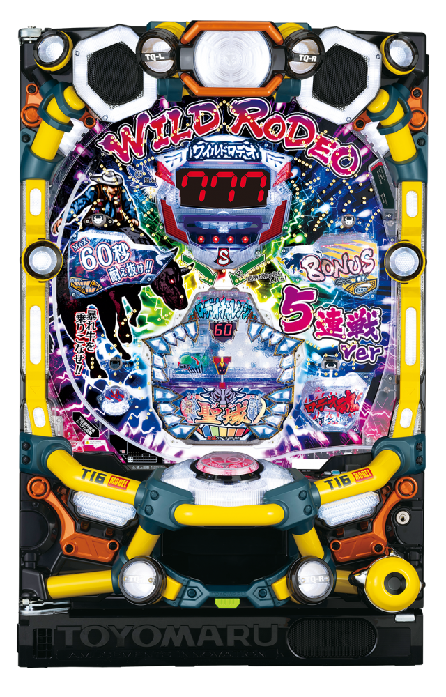 デジタル+役物の2段階抽選を採用。従来機とは発想を逆転させたゲーム性で、デジタルが3つ揃えばロデオチャレンジなる役物抽選へと移行。選択された制限時間内(60or40or20秒)で玉がハズレ穴に落ちなければ見事大当りとなる。当然、制限時間が短いほどチャンス!