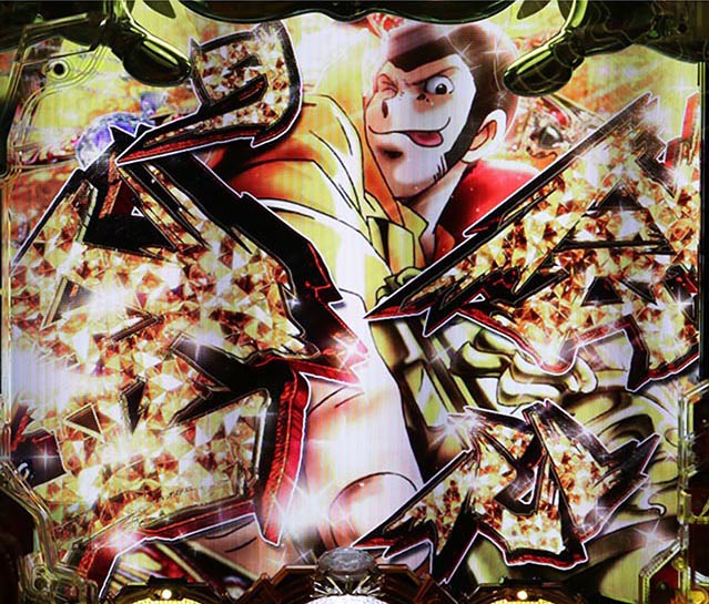 約2000発が約71.5%でループするルパン三世シリーズの最新パチンコ機は、通常時の予告やリーチにカットインが多発するため、信頼度アップパターンを熟知することが重要。写真の神出鬼没カットインやCRITICAL REDカットインなら大チャンスだ。
