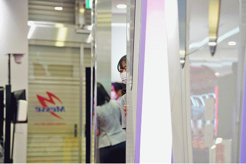 | 37.5度以下、問題なし!左のディスペンサーで消毒して取材開始!! |