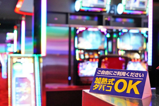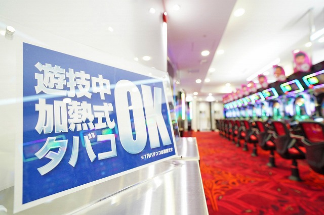さらに目立つのは「遊技中加熱式タバコOK」のフレーズ!
