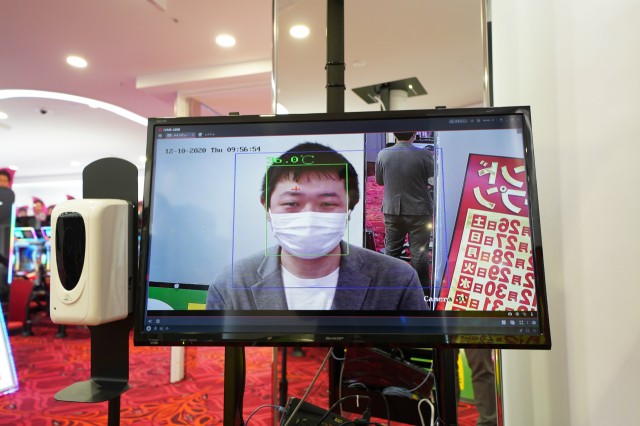 まずは入口をくぐってすぐ、設置してある最新サーモカメラで検温!!