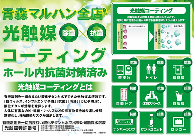 余談ではあるが、青森マルハンでは今般の新型コロナウイルス対策として、全店で光触媒コーティングを施工済み。