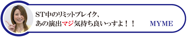 MYME「個人的にも良い想いしかしてない機種でもあり…。STもウマいことやれてるんですよ。それにST中のリミットブレイク、あの演出マジ気持ち良いっすよ!!」