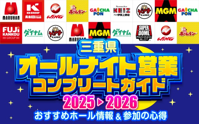 この時期にパチンコ・パチスロファンの間で大きなトレンドとなるのが三重県のオールナイト営業。というわけで、その全貌をつかむことができるコンプリートガイドを今年も公開しちゃします!