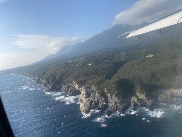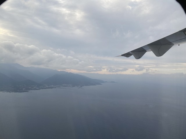 鹿児島空港を飛び立ってから約40分、着陸態勢に入った飛行機から視界に入った景色は山紫水明の地。この景観は他の空港ではなかなか見ることができないだろう。