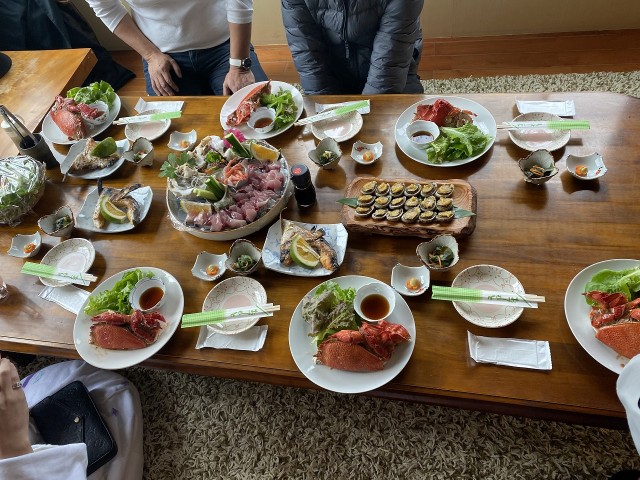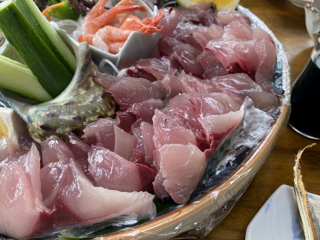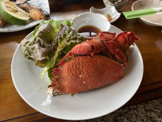 テーブルには屋久島近海で捕れた魚介類がズラリ。昼食というよりは、もはや晩餐会といっても過言ではない。おもてなしの心意気レベルが高すぎて、2人とも胃液が止まらなかったとのこと。