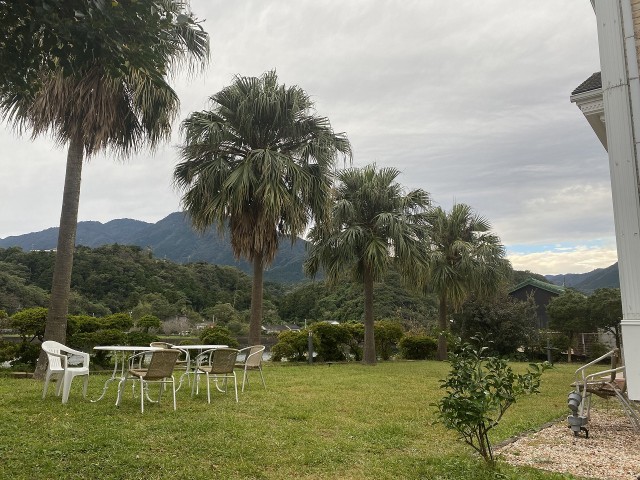 庭もこの広さ! 安房地区周辺の山々を眺めつつ、鳥のさえずりに耳を傾けながらゆったりとした時間を過ごせる癒しの空間となっている。