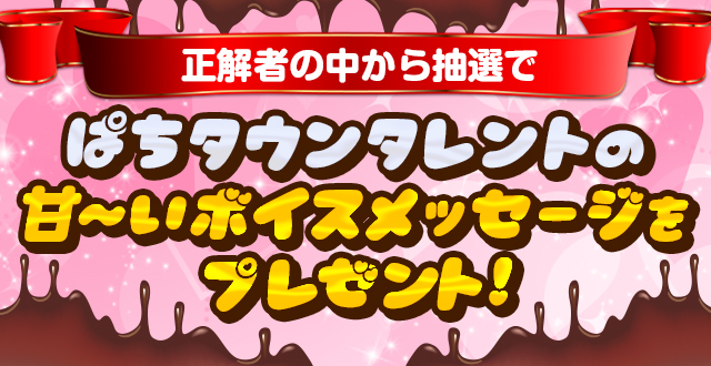全問正解された方は、クイズ回答時のアンケートにお答えいただいた希望タレントの特別ボイスメッセージが当たるチャンス! DMMぱちタウン公式アカウント(@DMM_pachitown)のフォローを忘れず、DMでの連絡をお待ちください!!
