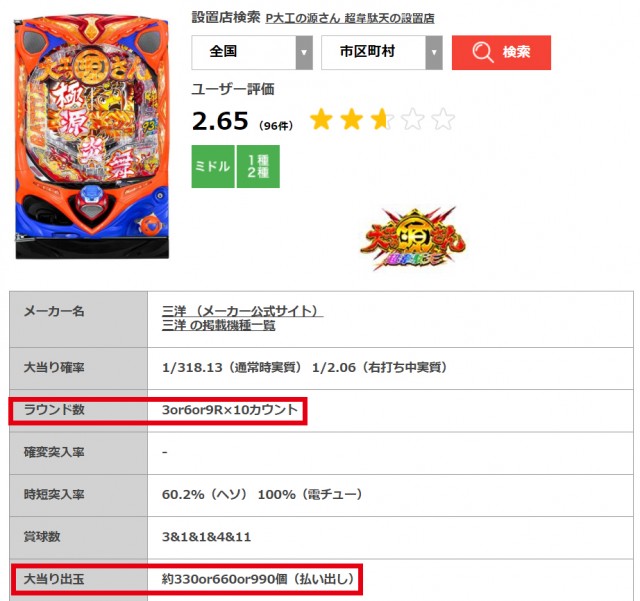 一方、甘デジスペックなどの初当り確率が高い機種は、大当り出玉は少ないのが基本。賞球数が少ないか、最大の15個に近い賞球が得られる機種なら、ラウンド数が少ないケースが多いです。