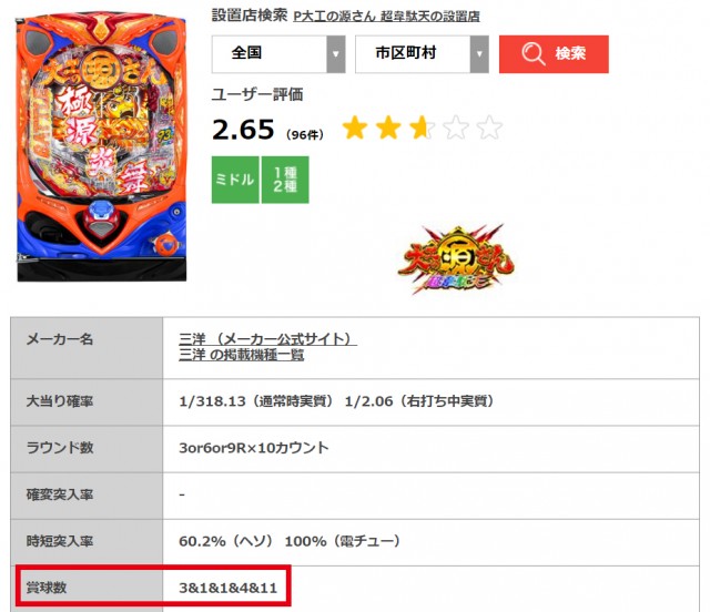 ここで当ページ冒頭で挙げた、『P大工の源さん 超韋駄天』の賞球数を再度チェックしてみましょう。