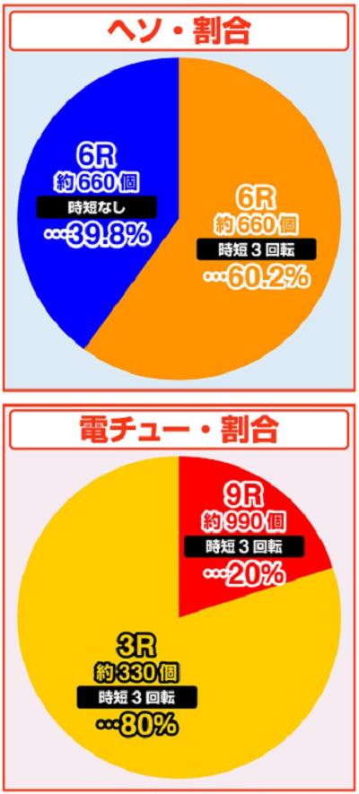 また、ラウンド数は、ヘソや電チューで大当りした際の内訳に応じて決定。