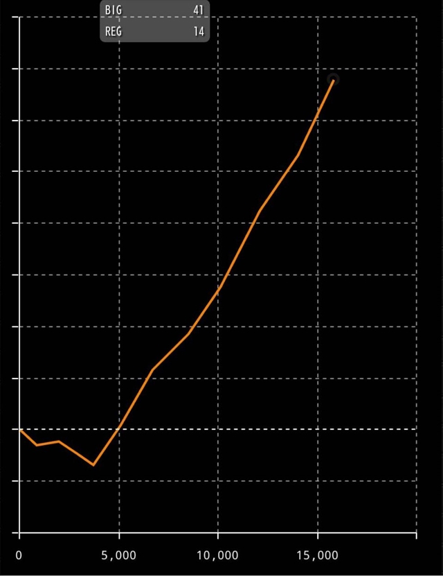 9000枚近く出ていたり、6号機とは思えない一撃のグラフなどが、先行導入店では量産されているようです。導入から日が浅いうちにこのグラフですから、全国導入が始まったらどんな記録が出るのか、震えるほど楽しみでなりませんね。