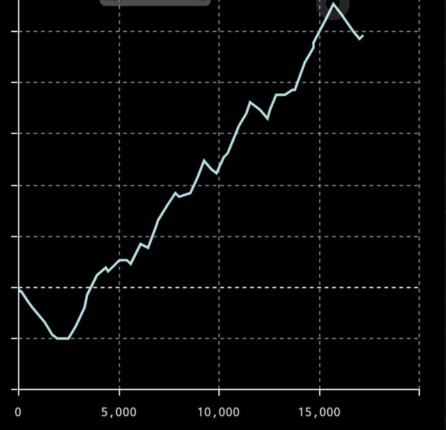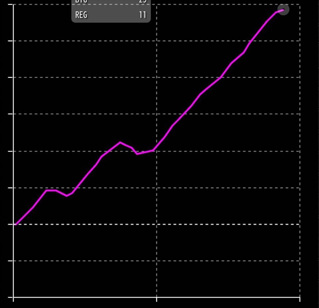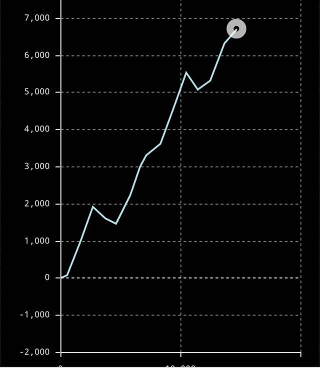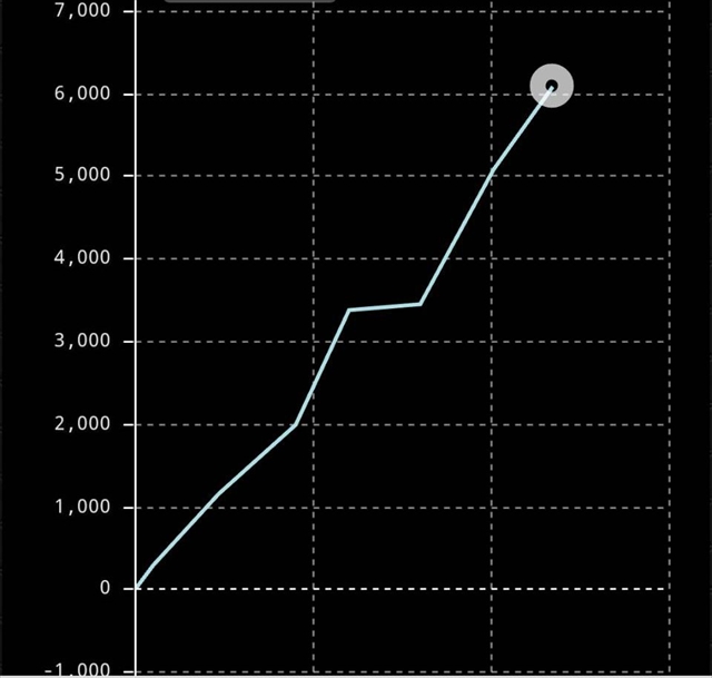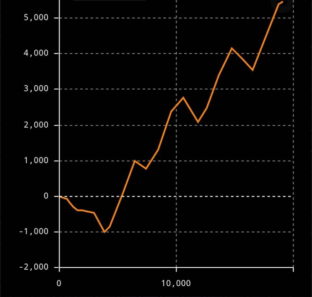 ハイ、本機のゲーム性などは沖ヒカルさんの動画で詳しく解説しているので試打の内容を思いっきり割愛しまして、コチラが設定6のスランプグラフになります。