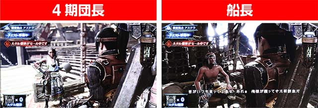 4期団長or船長との会話で以下のセリフが発生すれば、2クエスト以内に天井が発動する期待度がアップ!