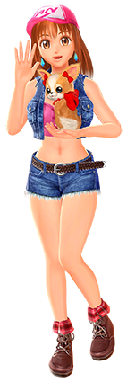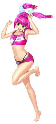 ピンク色の髪にスレンダーボディー、元気で活発な性格でお転婆なのが特徴。