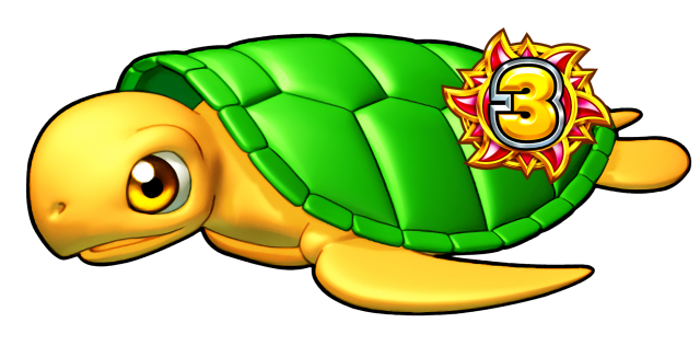3図柄には爬虫類のカメが登場。海中が舞台ということで、このカメはウミガメでしょうか。