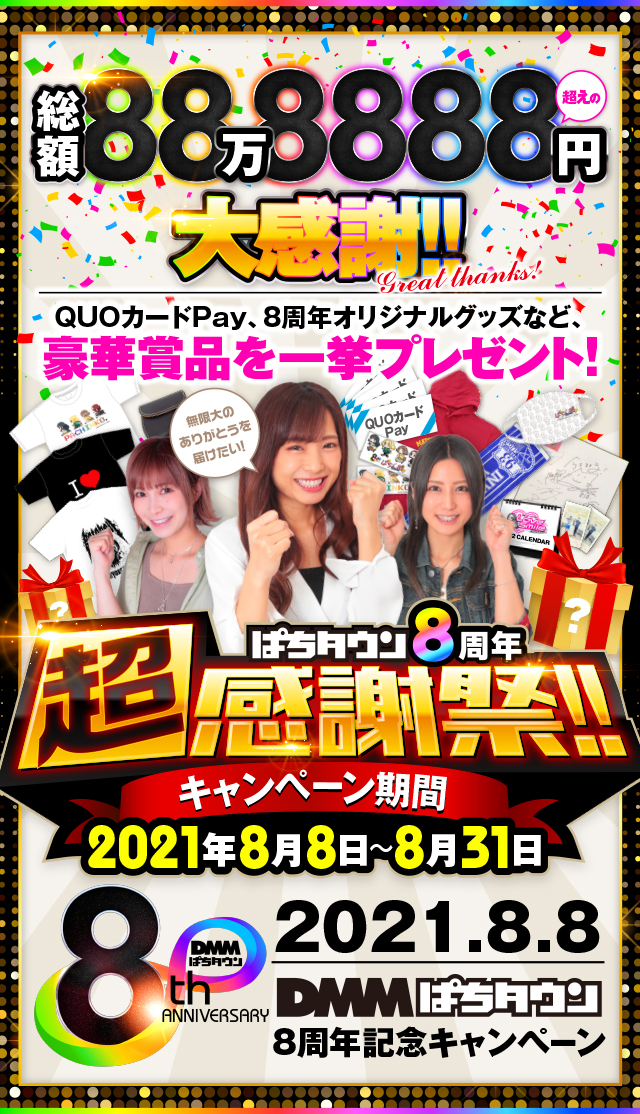 ついに迎えましたDMMぱちタウン8周年! みなさまへの日頃の感謝の気持ちをこめて【超感謝祭!!】をスタート!!