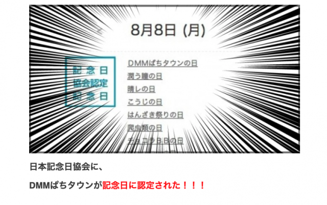 そして、日本記念日協会によって正式に8/8が「DMMぱちタウンの日」として認定されたのも2016年。