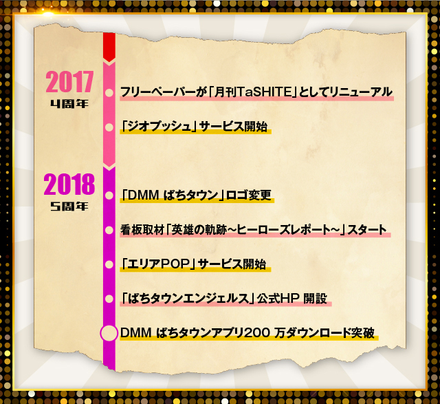 5周年を迎えた2018年には「DMMぱちタウン」ロゴがリニューアル。