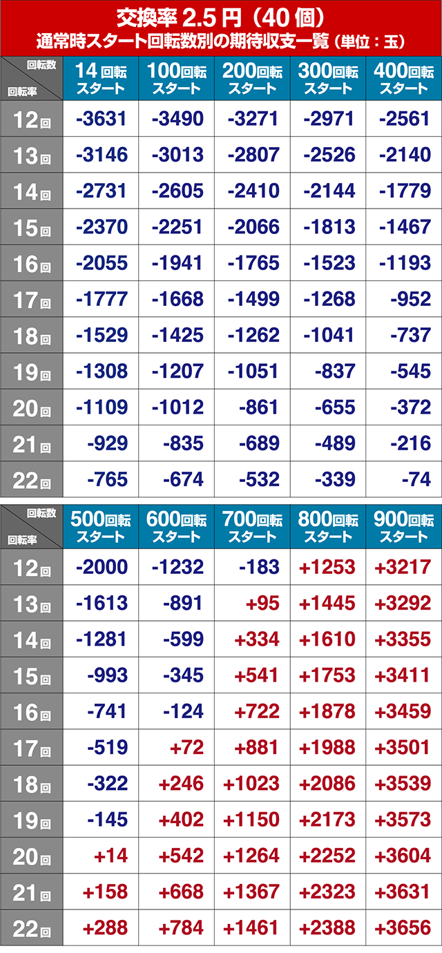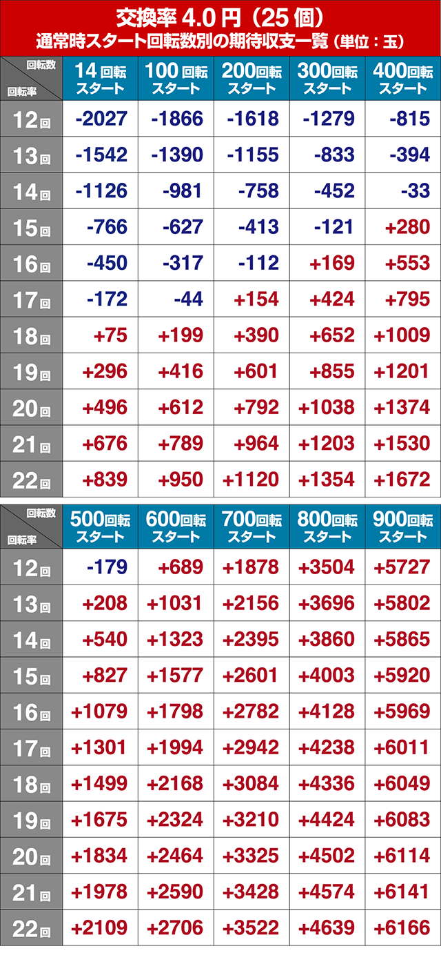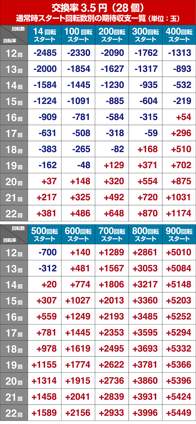 交換率と台の回転率次第で、狙い目となる回転数が大きく変化するのが特徴。