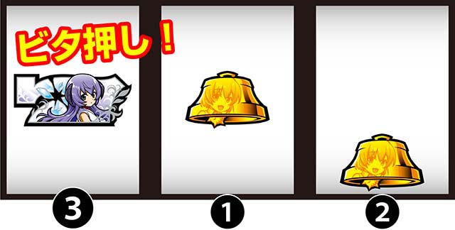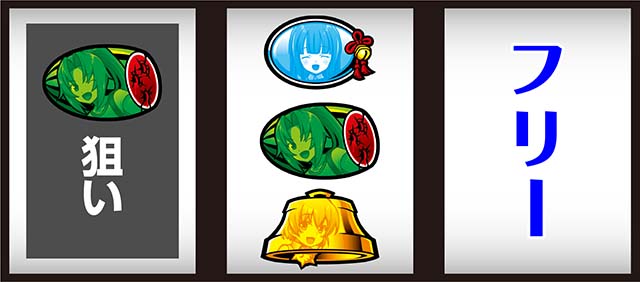 基本的にはベルなので、左右のリールはフリー打ちで問題ない。強い演出の場合は確定チェリーの可能性があるので左リールにBARを狙ってみよう。ちなみに、中段にベルが揃ったらリーチ目リプレイだ。
