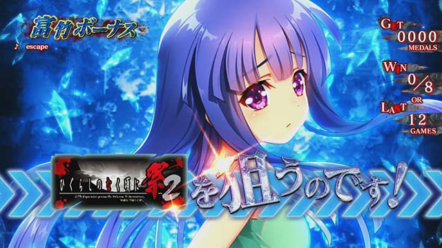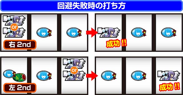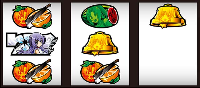 スイカが揃わなければ基本的にREGだが、3コマスベった場合(右リール下段赤7ビタ押しからの3コマ)に限り、赤ひぐらしor白オヤシロの可能性もある。