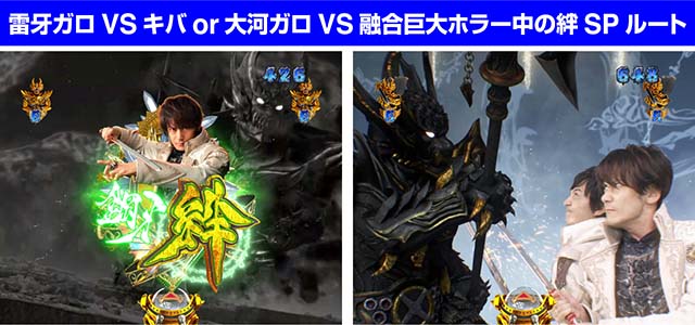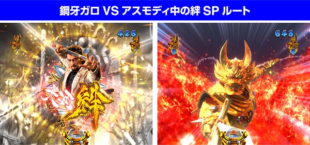 絆図柄獲得後は牙狼SPリーチ中に発動、二騎士が登場する絆SPルートに分岐。