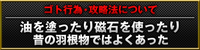 店「うちでは最近あんまりないですけど、役物機は被害にあう可能性ありますよね。昔は多かったですよ。羽根物で玉に油を塗って滑りをよくしたり、磁石を使ったりして、V入賞しやすくしてね」