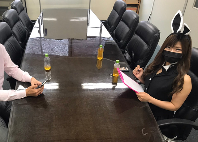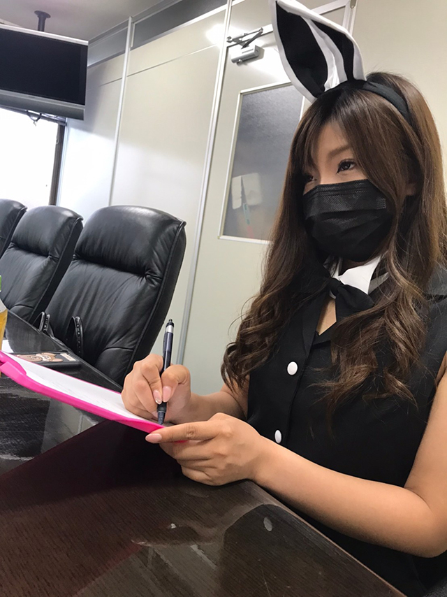 気合を入れすぎたのか、謎のバニースタイルでのインタビューです。