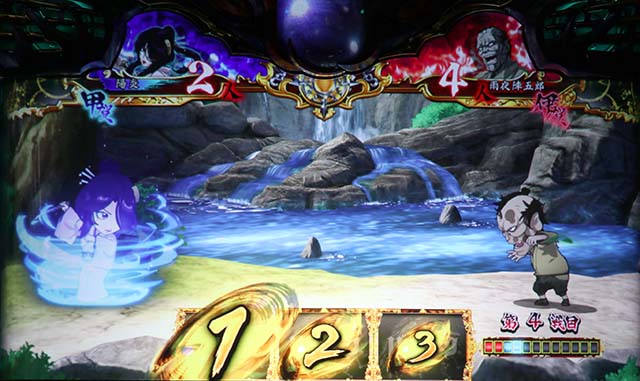 争忍の刻開始画面時、設定5以上確定の「弦之介&朧(紫)」出現時は“お見事でございますな朧殿”という弦之介のボイスが発生する。