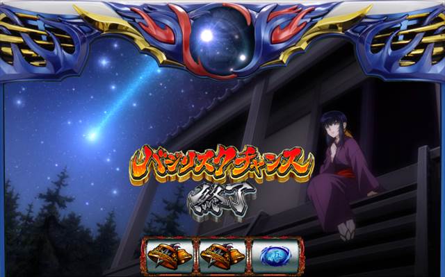 その中でも、チャンスアップとなるパターンは最終ゲーム1G前に発生するカットインと朧のエフェクトの有無、最終ゲームの弦之介シルエットなどだ。