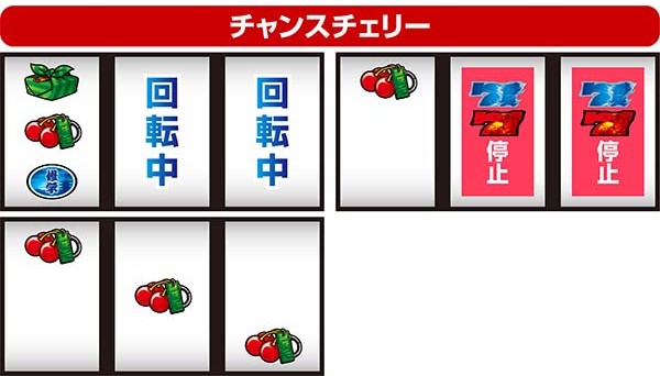 左リールにチェリーを狙うするだけではチャンスチェリーを判別できない場合もあるため、中・右リールもチェリー or ボーナス図柄をしっかりとフォローすることを推奨する。