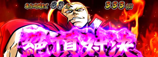 ベル7回以下での対決発展確定。ベルの規定回数は最大で7回。対決連のループやチャンスへの移行率に注目しよう。