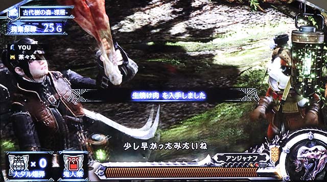 探索パート中に発生する肉焼き演出は、音楽に合わせて第3ボタンを離すことでこんがり肉を焼くことができる(音楽がきれてから気持ち遅めに離すと成功しやすい)。
