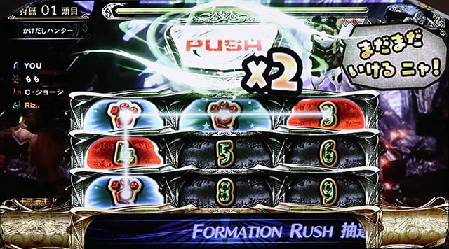 狩猟パートの前兆中なども狩猟パートの抽選をおこなっていて、当選した場合は一旦ストック。ストックされるのは、レア役から当選した場合のみとなる。