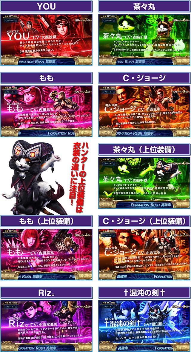 | 上位装備キャラのハンター登場 | 偶数設定示唆(中) |