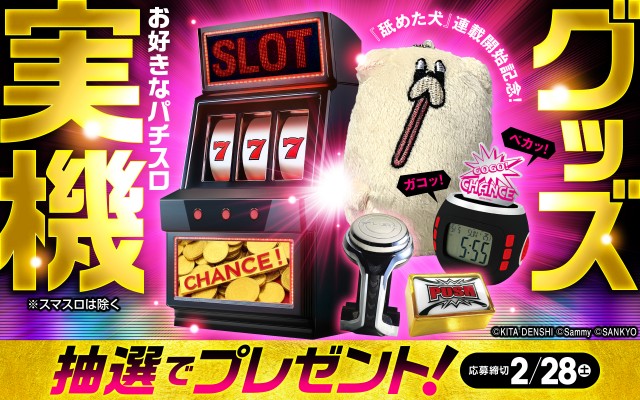 パチスロ実機のプレゼントは継続しつつ、さらに新連載開始記念でいつもとちょっと違うものや、最近いろいろな種類も出ている楽しいグッズなど盛りだくさん。ぜひゲットしてパチンコ・パチスロライフをよりお楽しみください!
