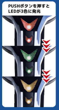 さらにレバーだけでなく、ボタン部分にも仕掛けがあります。ボタンがカチッと鳴るまで押すと、レバー部分が光るんです!