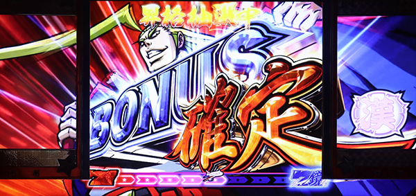ボーナス確定画面では、成立役に応じて青7への昇格ポイントを抽選し、規定ポイント(最大9pt)に到達すれば青7に昇格する。