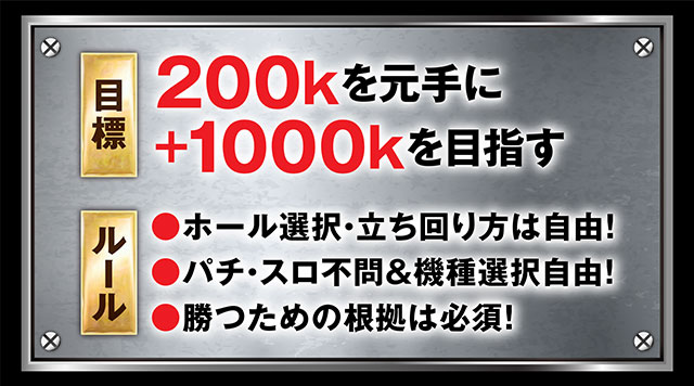 ぱちタウンの偉い人・鳩部長のポケットマネー200kを軍資金に+1000kを目指す180日戦争が、レディースver.として復活! ガチ勢もエンジョイ勢も自分なりの勝つ根拠を持って実戦します。