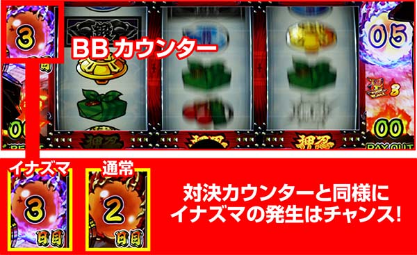 BBカウンターにイナズマが発生すると、ボーナス期待度の高いセット。